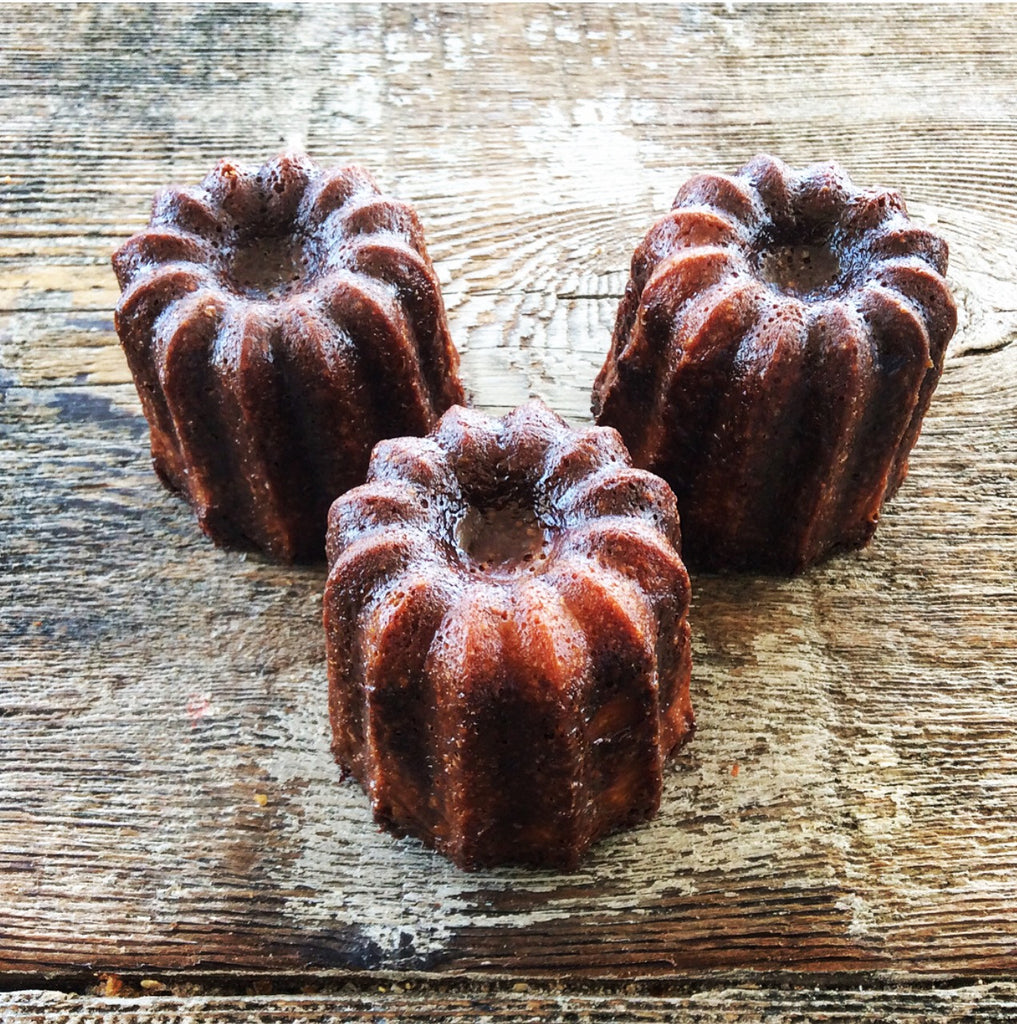 Canalé A specialty of Bordeaux, Canalé has a soft and tender custardy cake center, and a dark, thick caramelized crust. (sold in singles)